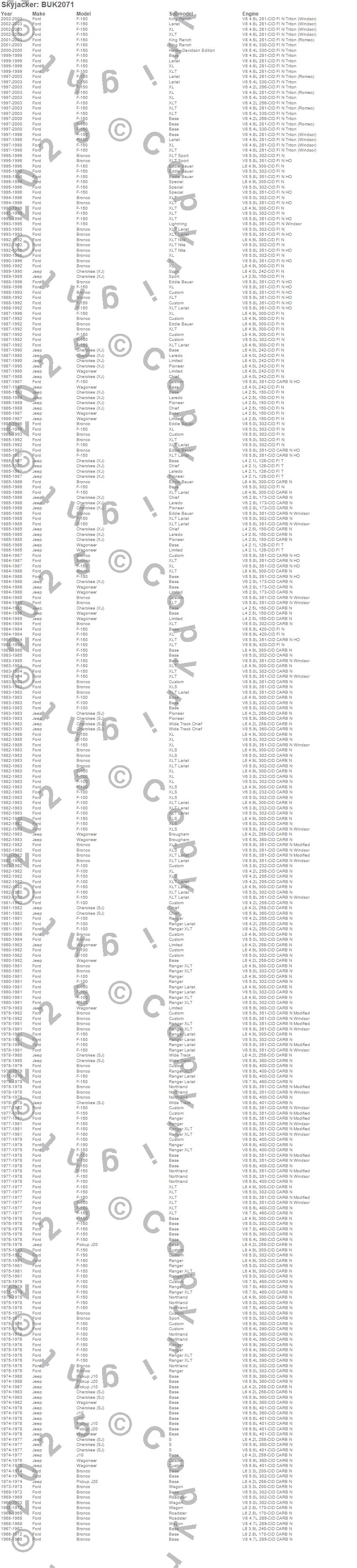 Bronco, Cherokee (SJ), Cherokee (XJ), F-100, F-150, J10, J20, Wagoneer, Ford, Jeep, 2003, 2002, 2001, 2000, 1999, 1998, 1997, 1996, 1995, 1994 more…