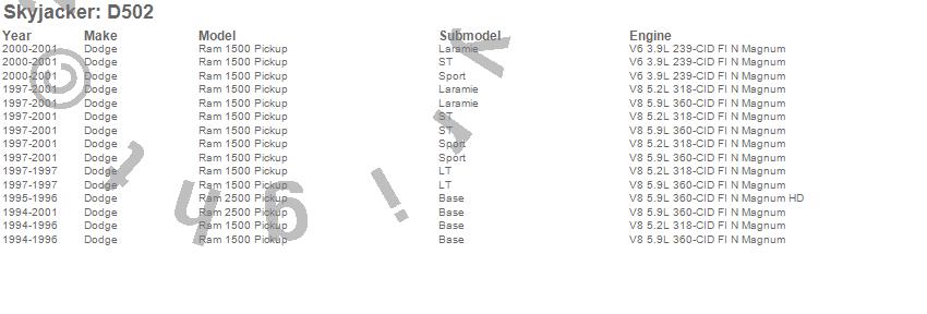 Ram 1500, Ram 2500, Dodge, 2001, 2000, 1999, 1998, 1997, 1996, 1995, 1994 more…