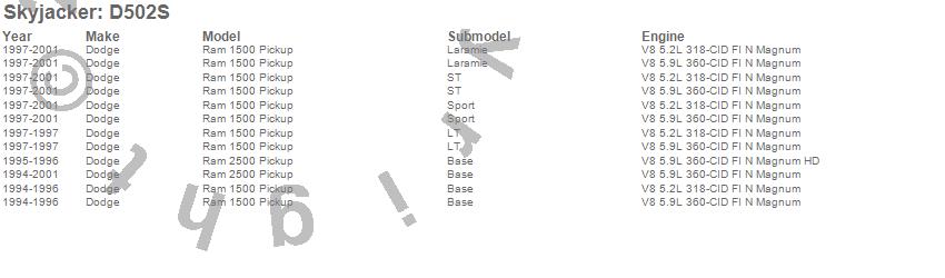 Ram 1500, Ram 2500, Dodge, 2001, 2000, 1999, 1998, 1997, 1996, 1995, 1994 more…