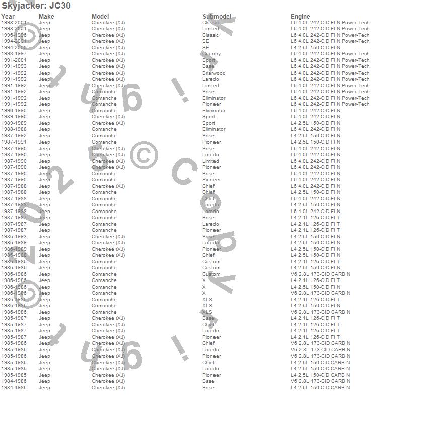 Cherokee (XJ), Comanche, Jeep, 2001, 2000, 1999, 1998, 1997, 1996, 1995, 1994, 1993, 1992, 1991, 1990, 1989, 1988, 1987, 1986, 1985 more…