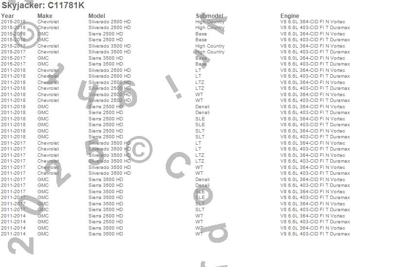 Skyjacker Suspension Lift Kit C11781K Features:
