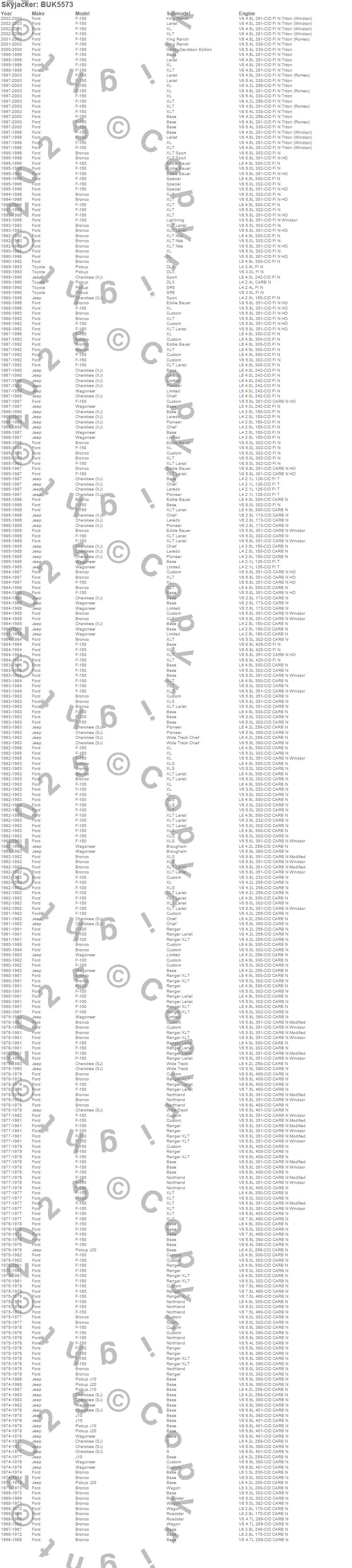 Bronco, Cherokee (SJ), Cherokee (XJ), F-100, F-150, J10, J20, Pickup, Wagoneer, Ford, Jeep, Toyota, 2003, 2002, 2001, 2000, 1999, 1998, 1997, 1996 more…