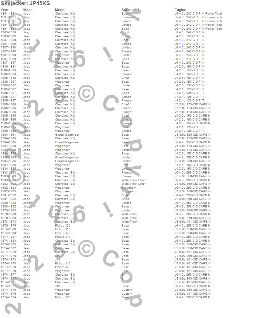 Skyjacker Suspension Lift Kit JP45KS Features: