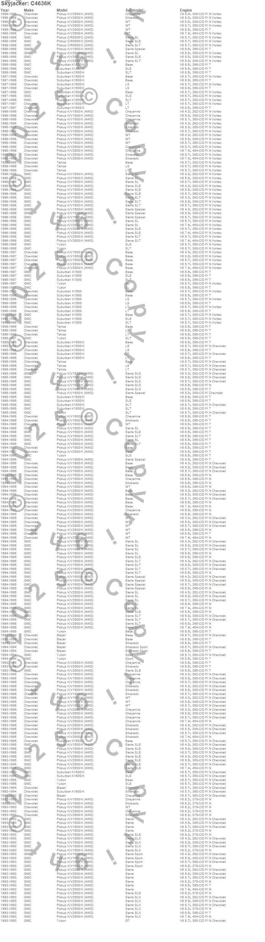 Blazer, C3500 Pickup, K1500, K1500 Pickup, K1500 Suburban, K2500 Pickup, Tahoe, Yukon, Chevrolet, GMC, 1999, 1998, 1997, 1996, 1995, 1994, 1993 more…
