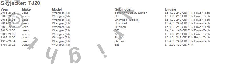 Skyjacker Suspension Lift Kit TJ20 Features: