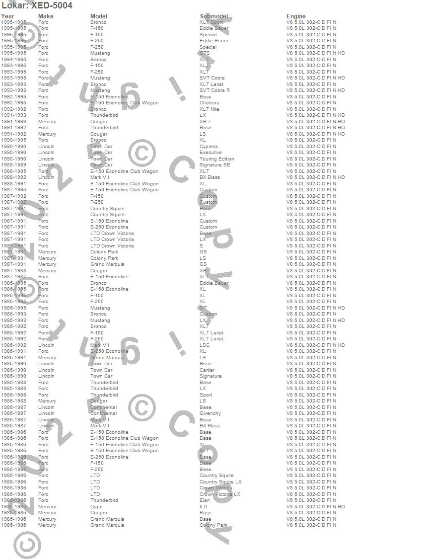 Below is an abreviated list of applications for the Midnight Series Flexible Engine Dipstick.