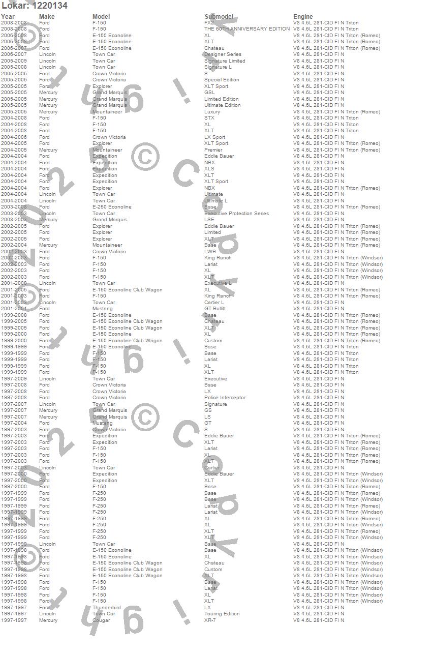 Cougar, Crown Victoria, E-150 Econoline, E-150 Econoline Club Wagon, E-250 Econoline, Expedition, Explorer, Explorer Sport Trac, F-150, F-250, Grand Marquis, Marauder, Mountaineer, Mustang, Thunderbird, Town Car, Ford, Lincoln, Mercury, 2008 more…