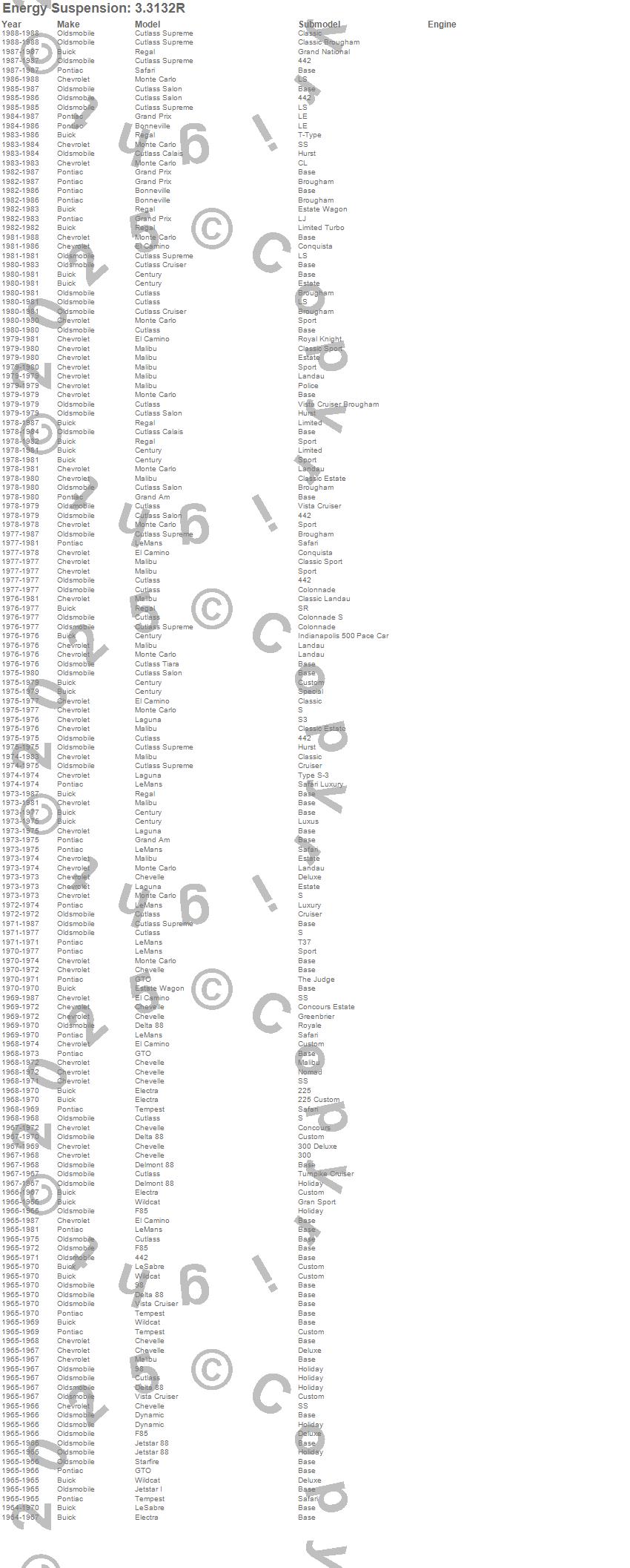 442, 98, Bonneville, Century, Chevelle, Cutlass, Cutlass Calais, Cutlass Cruiser, Cutlass Salon, Cutlass Supreme, Cutlass Tiara, Delmont 88, Delta 88, Dynamic, El Camino, Electra, Estate Wagon, F85, Grand Am, Grand Prix more…