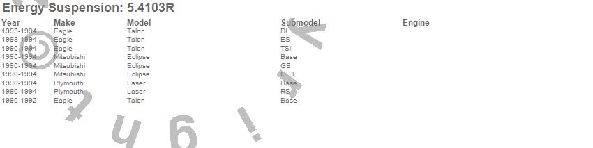 Below is an abreviated list of applications for the Sub-Frame Bushing Set.