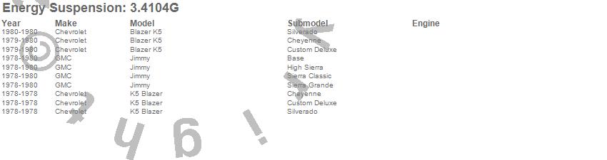Below is an abreviated list of applications for the Body Cab Mount Set.