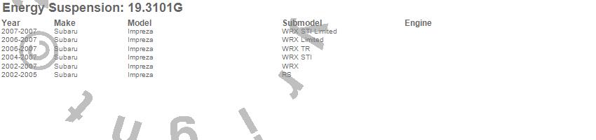 Energy Suspension Control Arm Bushing Set 19.3101G Features: