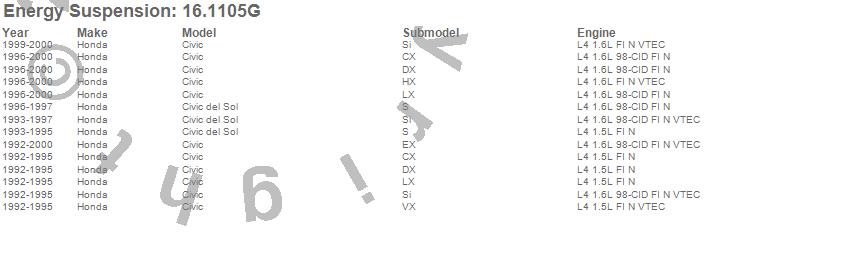 Below is an abreviated list of applications for the Polyurethane Motor Mount Insert.