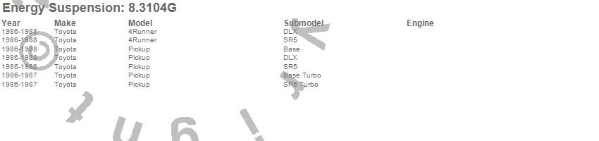 Below is an abreviated list of applications for the Control Arm Bushing Set.