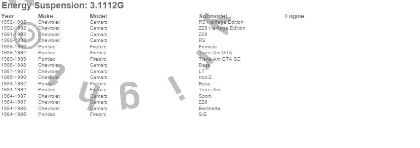 Below is an abreviated list of applications for the Performance Torque Arm Mount Bushing.