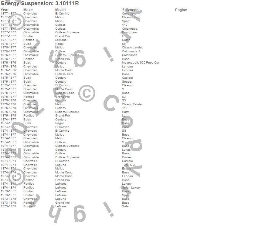 Century, Cutlass, Cutlass Salon, Cutlass Supreme, Cutlass Tiara, El Camino, Grand Am, Grand Prix, Laguna, LeMans, Malibu, Monte Carlo, Regal, Buick, Chevrolet, Oldsmobile, Pontiac, 1977, 1976, 1975 more…