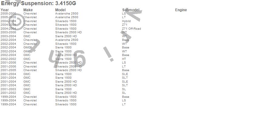 Below is an abreviated list of applications for the Body Cab Mount Set.
