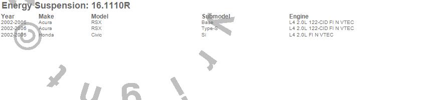 Below is an abreviated list of applications for the Polyurethane Motor Mount Insert.