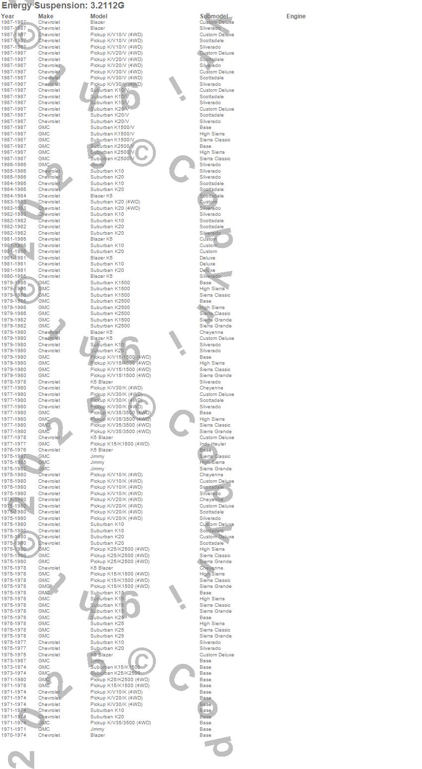 Blazer, Blazer K5, Jimmy, K10 Pickup, K10 Suburban, K15 Suburban, K15/K1500, K15/K1500 Suburban, K1500, K1500 Suburban, K20 Pickup, K20 Suburban, K25 Pickup, K25 Suburban, K25/K2500 Pickup, K25/K2500 Suburban, K2500 Pickup, K2500 Suburban, K30 Pickup, K35 Pickup more…