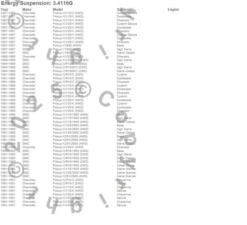Below is an abreviated list of applications for the Body Cab Mount Set.