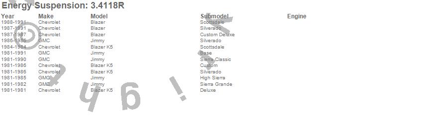 Below is an abreviated list of applications for the Body Cab Mount Set.