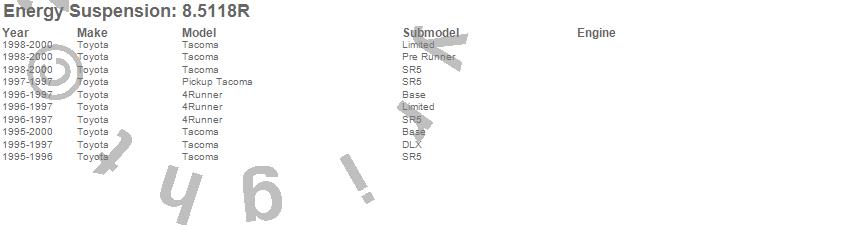 Energy Suspension is a self-contained company with all services in-house–in order to maintain the highest quality control possible. They have over two decades of in-house experience in innovating, engineering and formulating a wide selection of polyurethane components for many different industries. This has qualified Energy Suspension as a premier manufacturer of the highest quality polyurethane products available today. Excellence is company policy, from the initial design stages, where tolerances, preloads and material formulations are made–through the molding processes, to welding techniques, to hardware selection. This attention to component function and the devotion to quality has resulted in nine U.S. Patents for the company. Innovations include: FIRST with a state-of-the-art on-site new product development program which carefully analyzes various vehicle reactions equipped with Energy's Performance Polyurethane technology. FIRST with the largest product line in the industry for both import and domestic vehicles, and it still is! FIRST with replacement Performance Polyurethane automotive Control Arm Bushings containing outer metal shells. FIRST with a patented Performance Polyurethane Transmission Mounts utilizing an Interlocking Safety Feature. FIRST to offer complete Performance Polyurethane suspension bushing Master Sets for front-to-rear coverage of vehicle suspensions for popular import & domestic vehicles-called THE HYPER-FLEX SYSTEM. FIRST with Polyurethane Greaseable Anti-Sway Bar Bushings which feature easy greaseable zerk fittings. FIRST with Performance Polyurethane Ball Joint and Tie Rod Dust Boots. FIRST with a complete Performance Polyurethane Vehicle Product Catalog Web Site that is updated weekly!