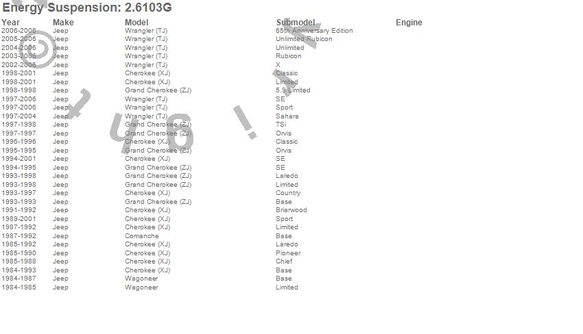 Cherokee (XJ), Comanche, Grand Cherokee (ZJ), Wagoneer, Wrangler (LJ), Wrangler (TJ), Jeep, 2006, 2005, 2004, 2003, 2002, 2001, 2000, 1999, 1998, 1997, 1996, 1995, 1994 more…