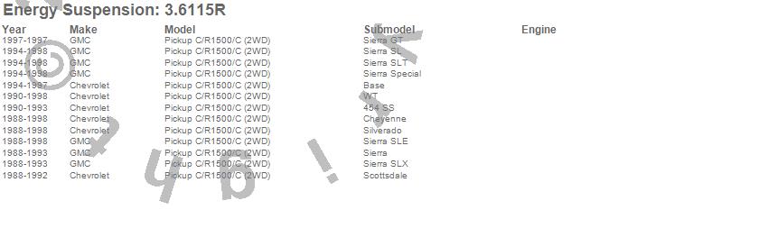 Below is an abreviated list of applications for the Coil Spring Isolator Set.