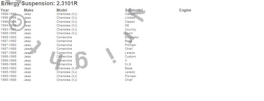 Cherokee (XJ), Comanche, Jeep, 1998, 1997, 1996, 1995, 1994, 1993, 1992, 1991, 1990, 1989, 1988, 1987, 1986, 1985 more…