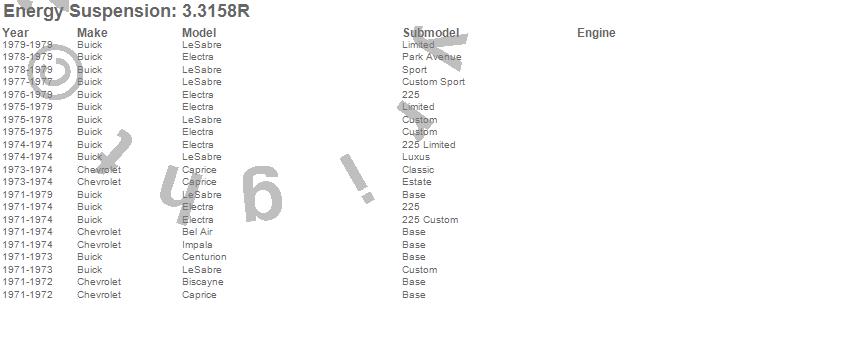 Below is an abreviated list of applications for the Control Arm Bushing Set.