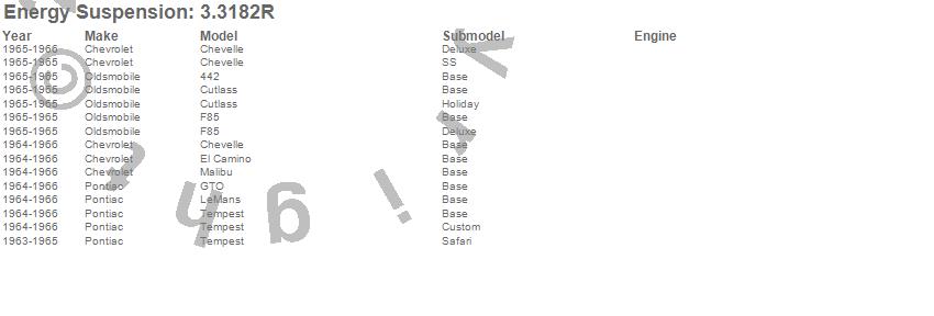 Below is an abreviated list of applications for the Control Arm Bushing Set.
