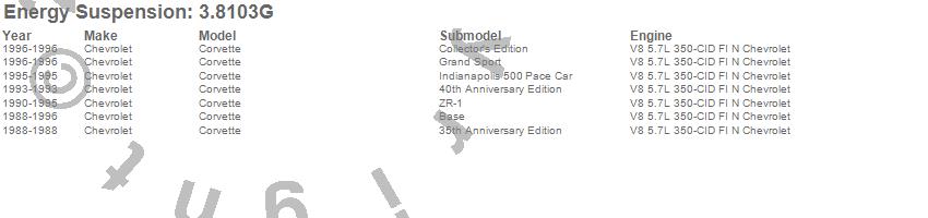 Below is an abreviated list of applications for the End Link Bushing Set.