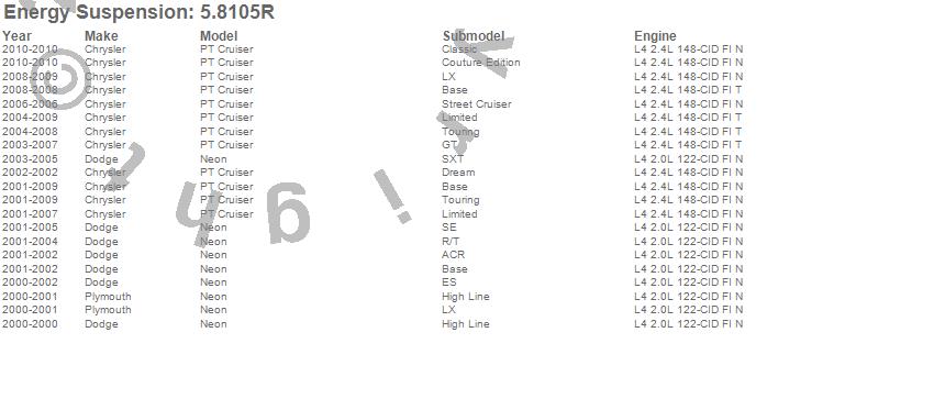 Below is an abreviated list of applications for the End Link Bushing Set.
