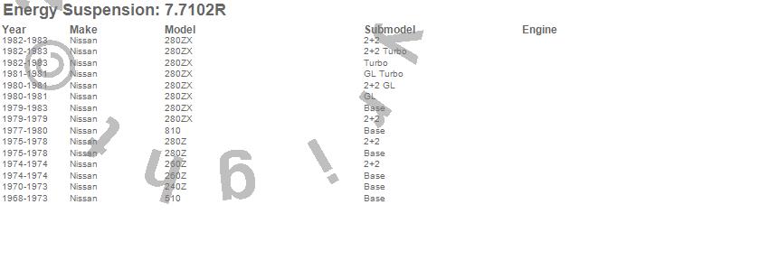 Below is an abreviated list of applications for the Strut Rod Bushing Set.