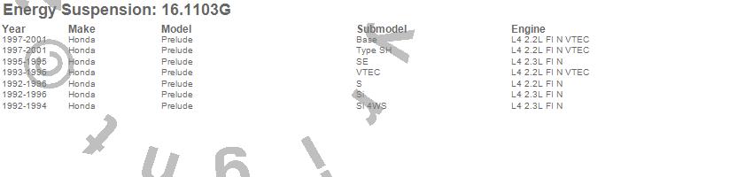 Below is an abreviated list of applications for the Polyurethane Motor Mount Insert.