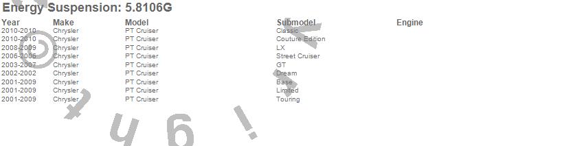 Below is an abreviated list of applications for the Watts Link Bushing Set.