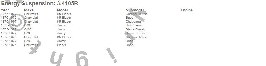 Below is an abreviated list of applications for the Body Cab Mount Set.