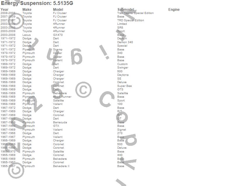 4Runner, Barracuda, Belvedere, Belvedere II, Charger, Coronet, Dart, Duster, FJ Cruiser, GTX, GX470, LX470, LX570, Road Runner, RX300, RX330, RX350, RX400h, Satellite, Scamp more…