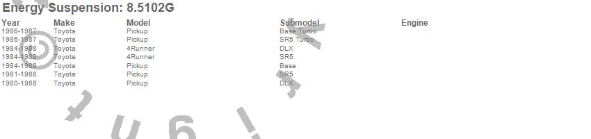Below is an abreviated list of applications for the Sway Bar Bushing Set.