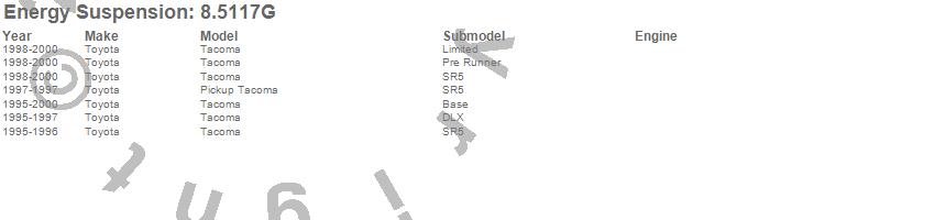 Below is an abreviated list of applications for the Sway Bar Bushing Set.