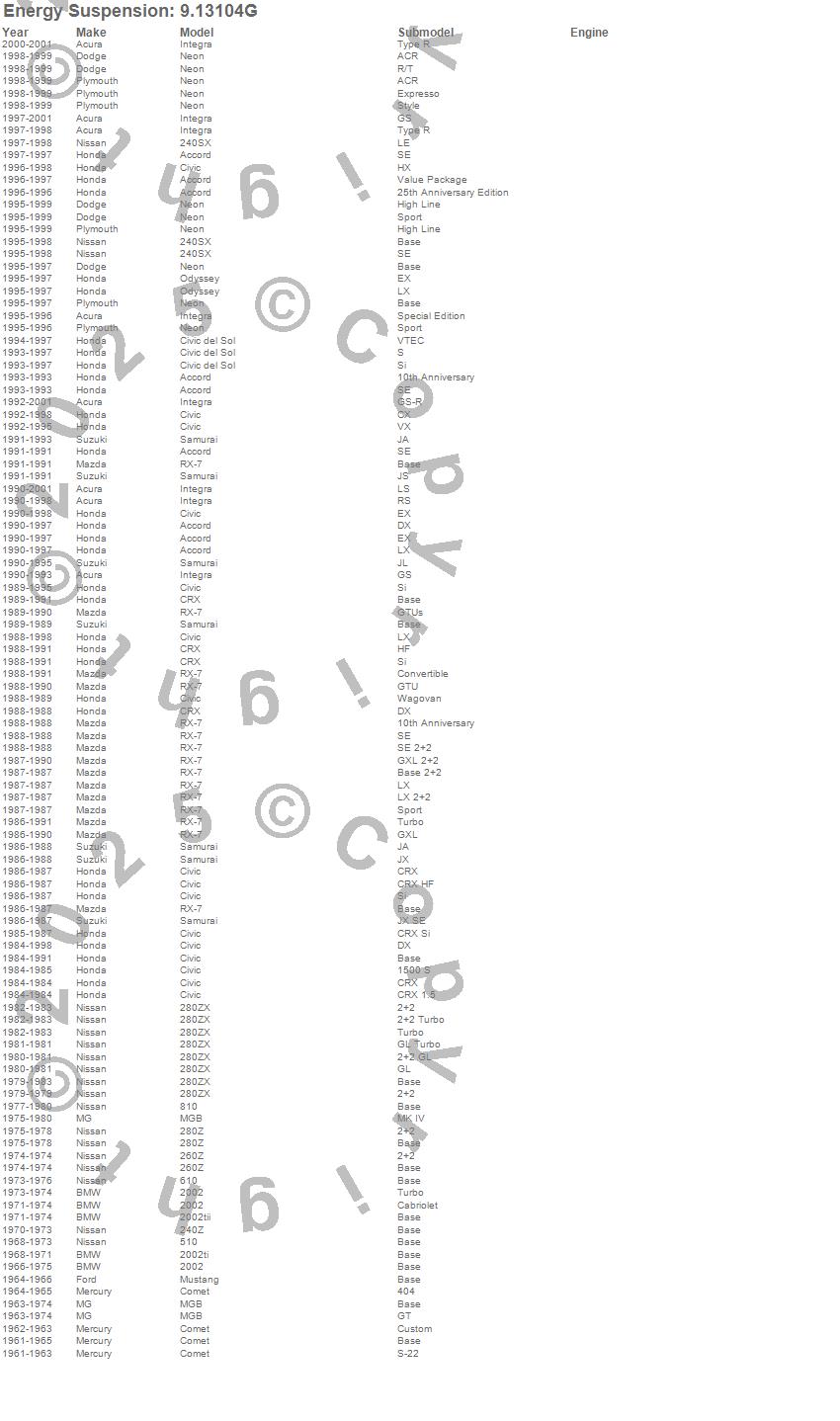 2002, 2002ti, 2002tii, 240SX, 240Z, 260Z, 280Z, 280ZX, 510, 610, 810, Accord, Civic, Civic del Sol, Comet, CRX, Integra, MGB, Mustang, Neon more…