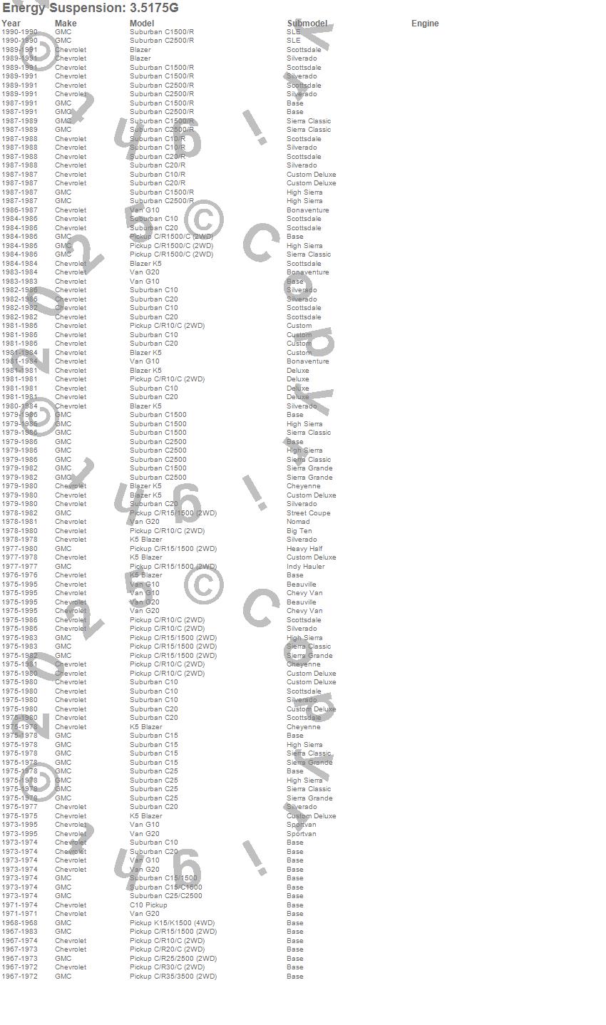 Blazer, Blazer K5, C10 Pickup, C10 Suburban, C15 Suburban, C15/C1500, C15/C1500 Suburban, C1500, C1500 Suburban, C20 Pickup, C20 Suburban, C25 Suburban, C25/C2500 Pickup, C25/C2500 Suburban, C2500 Suburban, C30 Pickup, C35/C3500 Pickup, G10 Van, G20 Van, K15/K1500 more…