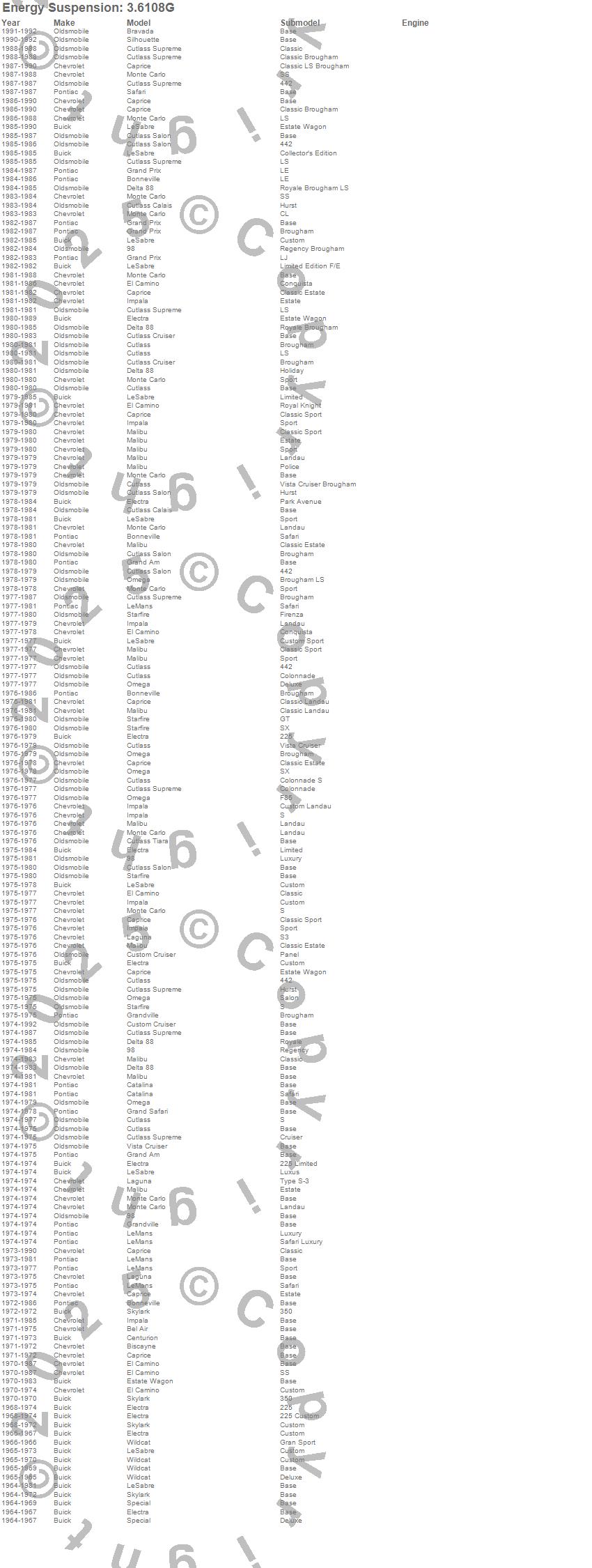98, Bel Air, Biscayne, Bonneville, Bravada, Caprice, Catalina, Centurion, Custom Cruiser, Cutlass, Cutlass Calais, Cutlass Cruiser, Cutlass Salon, Cutlass Supreme, Cutlass Tiara, Delta 88, El Camino, Electra, Estate Wagon, Grand Am more…