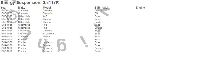 Below is an abreviated list of applications for the Control Arm Bushing Set.