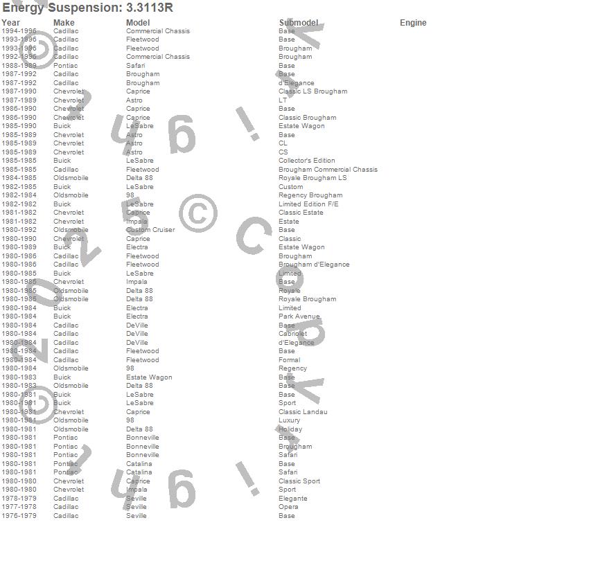 98, Astro, Bonneville, Brougham, Caprice, Catalina, Commercial Chassis, Custom Cruiser, Delta 88, DeVille, Electra, Estate Wagon, Fleetwood, Impala, LeSabre, Safari, Seville, Buick, Cadillac, Chevrolet more…