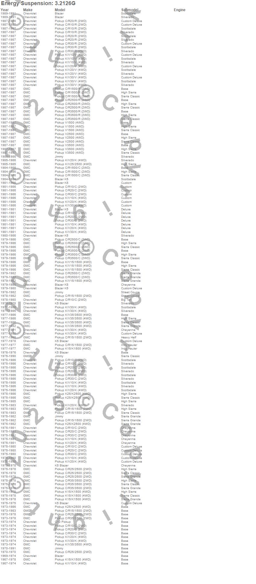 Blazer, Blazer K5, C10 Pickup, C15/C1500, C1500, C20 Pickup, C25/C2500 Pickup, C2500 Pickup, C30 Pickup, C35/C3500 Pickup, C3500 Pickup, Jimmy, K10 Pickup, K15/K1500, K1500, K20 Pickup, K25 Pickup, K25/K2500 Pickup, K2500 Pickup, K30 Pickup more…