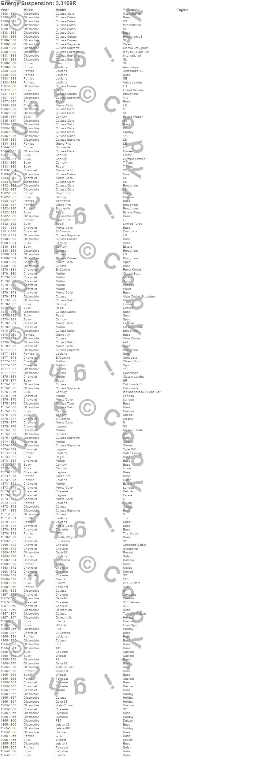 442, 98, Bonneville, Century, Chevelle, Cutlass, Cutlass Calais, Cutlass Ciera, Cutlass Cruiser, Cutlass Salon, Cutlass Supreme, Cutlass Tiara, Delmont 88, Delta 88, Dynamic, El Camino, Electra, Estate Wagon, F85, Grand Am more…