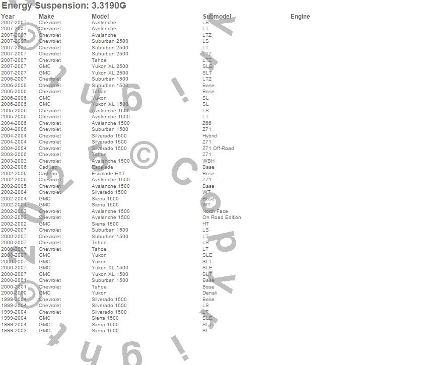 Avalanche, Avalanche 1500, Escalade, Escalade EXT, Sierra 1500, Silverado 1500, Suburban 1500, Suburban 2500, Tahoe, Yukon, Yukon XL 1500, Yukon XL 2500, Cadillac, Chevrolet, GMC, 2007, 2006, 2005, 2004, 2003 more…