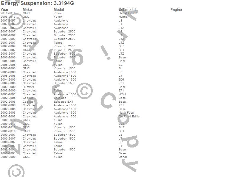 Avalanche, Avalanche 1500, Escalade, Escalade EXT, H2, Suburban 1500, Suburban 2500, Tahoe, Yukon, Yukon XL 1500, Yukon XL 2500, Cadillac, Chevrolet, GMC, Hummer, 2007, 2006, 2005, 2004, 2003 more...