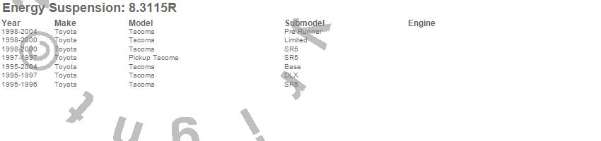 Energy Suspension Control Arm Bushing Set 8.3115R Features: