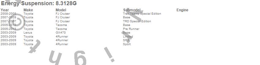 Below is an abreviated list of applications for the Control Arm Bushing Set.